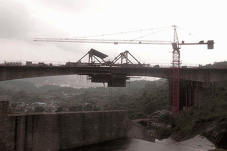 高脚水库大桥是机南路重点控制工程之一,为悬臂挂篮施工,桥梁总长194米.该大桥于2010年8月开始动工,至今历时14月有余。作为项目部承建的第一座挂蓝施工工艺的大桥,开工伊始,在面对征地困难、原始地理环境恶劣、桥梁施工技术人员匮乏等难题,项目领导班子积极应对,合理安排,及时优化人员配置,发挥各人所长,逐一地解决施工过程中的各种困难,并与全体参战员工一起加班加点、日夜麋战。在四百多个日日夜夜里,战高温酷暑,斗严寒霜雪,攻坚克难,优质高效地完成各个节点工期,使工程的安全、质量、进度始终处于受控状态,最终按业主要求顺利实现了年底大桥左幅合拢通车的目标,其安全文明施工也多次受到业主的好评,树立了公司良好的施工形象和口碑。