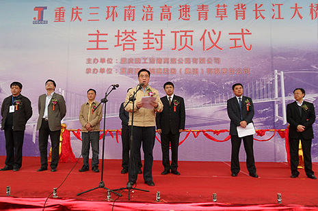 11月10日,伟德体育南涪高速青草背长江大桥南主塔举行封顶仪式在建工二建公司施工的LJ15施工段如期圆满举行。涪陵区副区长张力,集团董事长杨镜璞,城建集团董事长危接来,南涪公司总经理冯强,二建公司董事长党智勇等出席了封顶仪式。