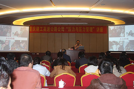 11月4日下午1点半,君顿两江酒店三楼一号会议室座无虚席,阵阵掌声响彻耳畔。第三军医大学杨国愉教授在此为伟德体育集团机关领导,涪南、遂资高速公路公司全体职工,总承包公司,渝远公司等部分子公司员工共计100余人作了题为“压力与压力管理”的专题讲座。杨国愉教授是第三军医大学心理健康教育中心专家成员之一,应用心理学硕士生导师,重庆市“三峡大讲坛・人文社科知识讲座”授课专家组成员,曾先后到北京、辽宁、河南、青海、福建、西藏等20余省市进行心理健康教育讲座300余场,直接听课人数达8万余人。