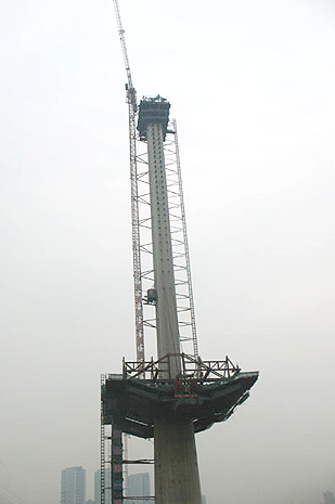 26#墩上塔柱工程的顺利冠顶,消除了上塔柱施工与主桥箱梁施工交叉作业带来的安全隐患,为双碑嘉陵江大桥以后的箱梁施工铺平了道路。