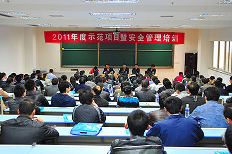 10月25日,在集团教育中心,举行了集团项目负责人、专职安全员、施工管理人员、设备管理人员2011年度轮训首期开班仪式。此次培训,旨在进一步贯彻落实集团杨镜璞董事长提出的“管理、培训、装备”并重原则,持续提高集团各施工现场一线的管理人员示范项目、安全管理和安全业务技能实战水平。