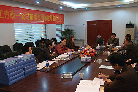 验收会上,市政一公司党委书记王亚雄热情地向检察组介绍了该司的基本概况和在建工程,并对该司文明单位的创建工作进行了详尽的汇报。市政一公司党委副书记、工会主席蔡成梅接着恳切地谈道,市政一公司一向重视抓好党建工作。特别是自2008年创建市级文明单位后,党建工作对该公司的软硬实力都起到积极的促进作用。她还指出,通过该司党委强有力的领导和组织保障,现在该司的项目经理不再像以往那样只注重生产建设,也越来越重视支部党建工作和人才队伍建设。最后市政一公司董事长王湘庆和王亚雄书记满怀信心,不约而同地发出邀请:“这次复查过关后,公司还将向‘市级文明单位标兵’看齐。届时欢迎诸位领导再次莅临指导。”