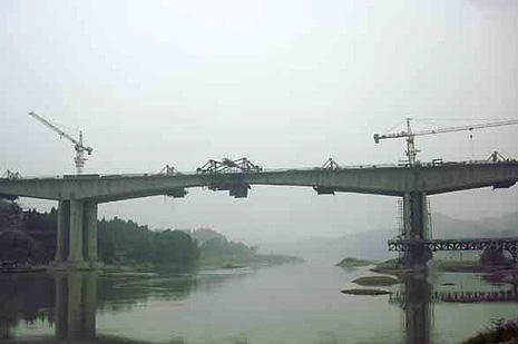 10月7日凌晨5点,由建工桥梁工程有限责任公司承建的遂资高速公路TJ2合同段沱江大桥7#、8#墩左幅主梁经过5个小时的紧张施工成功合拢。
