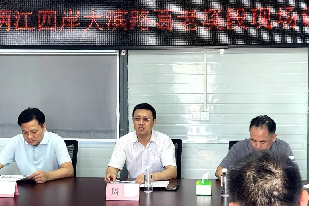 6月14日,集团党委副书记、总经理周进到伟德体育市政交通公司承建的“两江四岸”治理提升长江北岸线贯通工程——大滨路葛老溪段项目进行综合调研。集团副总经理程亮参加。