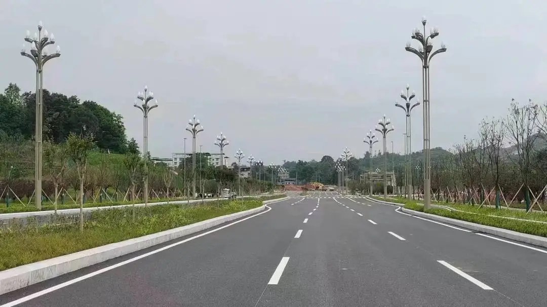 ■成渝地区双城经济圈川渝高竹新区制造产业园及配套基础设施建设项目(二期)K线道路及配套工程——道路全长约950米,属城市次干路,设计速度30千米/小时,标准路幅宽26米,其中车行道15米,人行道宽5.5米,双向四车道。目前项目道路已完成全部施工,待验收后即可移交。项目投入使用后,将有效提升周边区域基础设施水平,促进加速构建新区进出大通道。