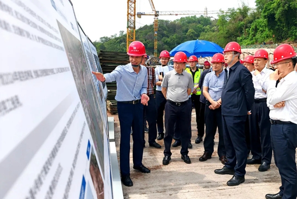 4月18日,江北区委书记滕宏伟,区委副书记、区长陶世祥,区委副书记张才明,副区长王世国来到由城建集团承建的北滨路东延伸段(一期)项目调研。