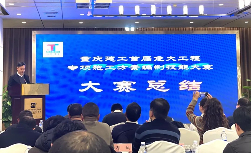 大赛特邀请重庆市住建委质安总站、在渝央企、科技咨询公司等7位专家组成评审委员会,保证了大赛的专业性、权威性、公正性。决赛现场,各参赛人员通过PPT展示危大工程专项施工方案,评审专家针对其中的要点进行提问,各位参赛选手冷静细心、表现优异,赛出了风格和水平。经过激烈角逐,三建公司获特等奖,埠外事业部、住建公司获一等奖,市政事业部、城建集团、九建公司获得二等奖,建安事业部、市政一公司等参赛项目获得三等奖。