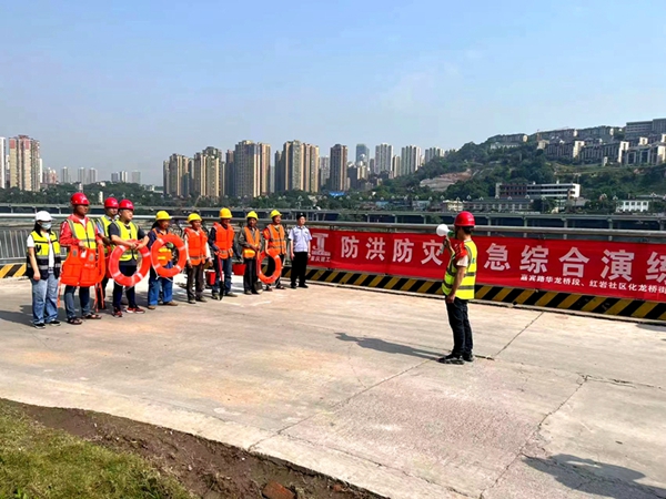 项目部始终坚持推动“红岩精神”与项目建设深度融合,充分利用资源优势,打造了一支“红岩铁军”队伍。自项目开工以来,项目部采取“两班倒”“5+2”工作模式挂图作战,紧扣关键工程节点,对施工工期、项目管理、技术攻坚等工作进行分层谋划、逐一推进。为克服桩基施工作业面施工难度大的问题,项目部发扬“坚如磐石、百折不挠”的“红岩精神”,群策群力、积极钻研,最终选取边坡搭设临时施工作业钢平台的最优方式,解决人工作业无作业面的问题,在节约施工成本的基础上,全面保障施工安全。在今年嘉陵江即将进入汛期时,项目部提前建立防汛应急预案,开展防汛防灾综合演练,确保全体员工保持抗洪抢险战斗状态。在汛期,项目部先后组织撤离吊车2台,挖机3台,钢筋加工区域车丝机、弯曲机、切断机、调直机、焊机等设备10余台,以最快的速度排除险情,为恢复生产创造条件,最大限度减少灾情对现场生产的影响。