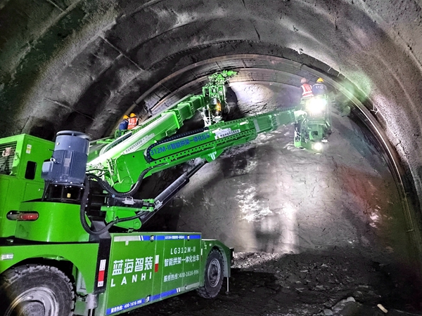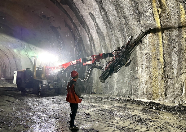 今年是安全生产攻坚年,项目党支部坚持党建与生产深度融合,在朝阳隧道建立了党员责任区,成立了党员突击队。2023年4月,丁家隧道掘进过程遇到长79米的破碎带,该段围岩自稳能力差,岩溶发育成“溶洞群”,共有数十个规格大小不等的溶洞,先后发生了两次大规模突泥,突泥量超14000m³。面对“拦路虎”,项目管理团队不畏艰险、迎难而上,高度重视超前地质预报工作,采用TGP、地质雷达、瞬变电磁仪以及水平钻机等先进的物探钻探设备,提前准确预报前方的不良地质体,并采用先进的施工设备如三臂凿岩台车、拱架安装台车等,确保施工的高效性和安全性,使进度取得了突破性进展。