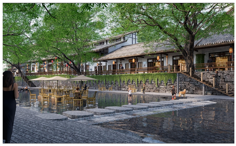 该项目位于重庆北碚区偏岩古镇,此次设计的124#-140#建筑位于古镇北端,背山面河,俗称“半边街”。方案提取原始在地元素,保持其国家级历史文化名镇原真性、完整性特色风貌,用料古朴,色彩雅致,功能现代。设计重组建立院落空间,使之成为古镇入口标志。
