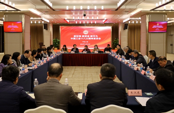 鲁学佳从聚焦“五大行动”、强化“五个着力”汇报了集团工会工作开展情况,并对贯彻此次宣讲会精神提出工作要求,强调要将此次会议精神与认真贯彻习近平总书记关于工人阶级和工会工作的重要论述,全面贯彻落实党的二十大精神、深入落实市委六届二次、三次全会精神、市第六次工代会精神和集团高质量发展要求相结合,抓好工会各项工作,不辜负上级工会的支持和肯定。鲁学佳要求,与会人员要将中国工会十八大精神认真学习好、领会好,向本级党委做好汇报。同时要将宣讲会精神传递到基层工会和广大职工身边,分层分级办好学习班,抓好精神的学习、宣传和落实,做到内化于心、外化于行。