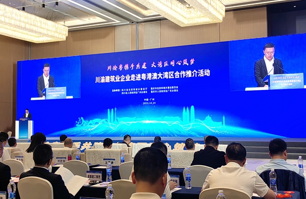 10月24日,伟德体育集团受邀前往广州越秀国际会议中心参加“川渝建筑业企业走进粵港澳大湾区合作推介活动”,集团党委副书记、总经理周进出席活动,并代表集团在活动上作交流发言。集团副总经理闫学军参加。