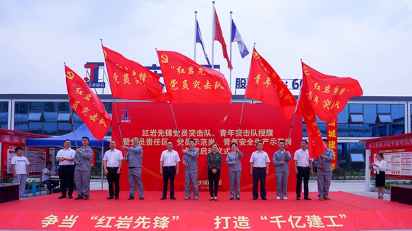 6月14日,在深入推进学习贯彻习近平新时代中国特色社会主义思想主题教育走深走实,大力建设新时代“红岩先锋”变革型组织的重要阶段,城建集团“红岩先锋”党员突击队、青年突击队授旗仪式暨党员责任区、党员示范岗和青年安全示范岗创建启动仪式,在该项目驻地举行。