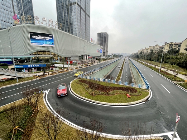 近日,由集团所属城建集团承建的两江新区重点市政工程——金开大道改造工程顺利通过验收,工程下穿道和匝道正式开放通行,意味着途径金开大道的直行车辆可以经下穿道从万年路路口至龙安路口,去往爱琴海购物公园的车辆可以通过匝道直接进入车库、附近单向车道恢复为双向车道。金开大道行驶更加便捷!