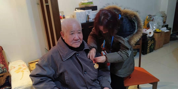 慰问组一行前往两位老战士家中,与老人们亲切交流,关心问候他们的生活起居,并认真聆听老人们讲述那段光辉历史。在老战士曾援家中,老人激动地拿出“抗美援朝70周年纪念章”戴上,这位九十多岁的老人在讲述上甘岭战役时依然中气十足,眼睛里闪烁着自豪的光芒。另一位老战士赵克勤由于腰部受伤已有些行动不便,他说:“那些年为了把战略物资送上前线,我不分白天黑夜的开车,腰受损了,但物资是一点都没耽误!”慰问小组工作人员认真倾听老战士们讲述当年的英雄事迹,感谢他们为党和国家作出的突出贡献。