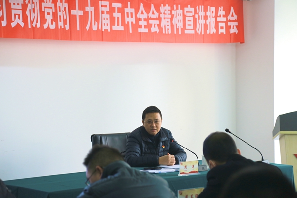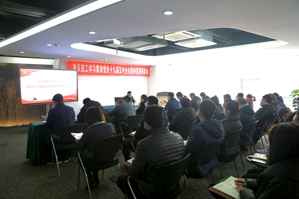 根据集团党委的统一部署,12月21日上午,集团党委委员、副总经理周进来到渝远公司就十九届五中全会精神进行宣讲。渝远公司党委书记、董事长李振宇主持报告会,集团相关职能部门、渝远公司领导班子成员、机关中干、各党支部委员、第三党支部全体党员共40余人参会。