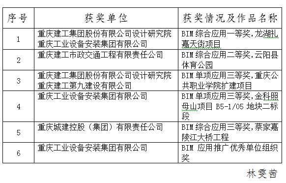 近日,从第五届建筑信息模型(BIM)应用竞赛组委会获悉,集团公司5家参赛单位分别获得重庆市勘察设计协会第五届建筑信息模型(BIM)应用竞赛一等奖1个、二等奖1个、三等奖3个、BIM应用推广优秀单位组织奖1个。具体名单如下: