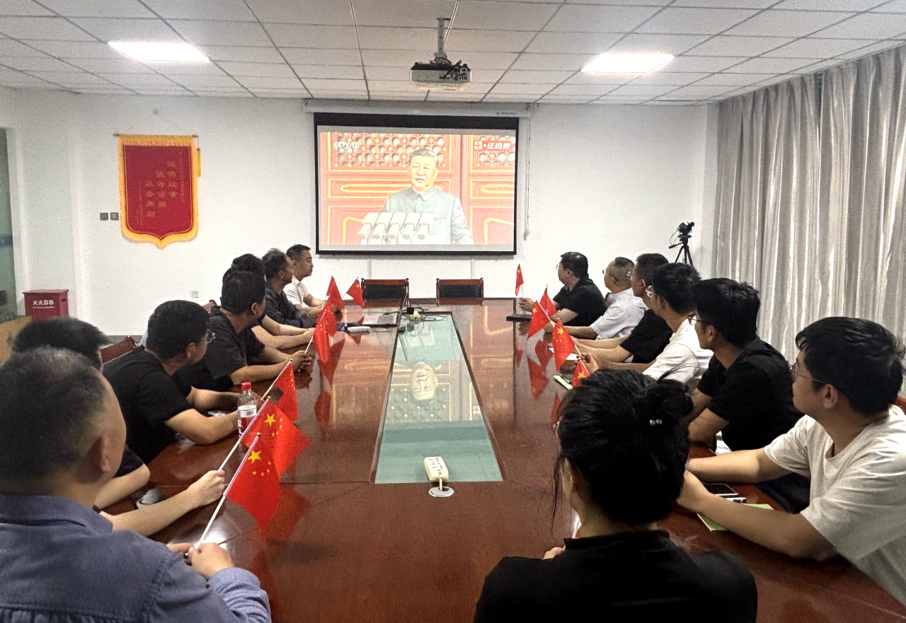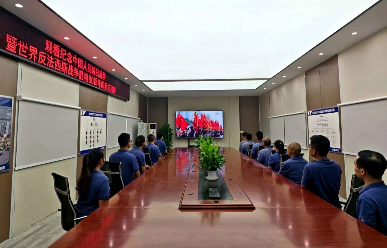 9月3日,纪念中国人民抗日战争暨世界反法西斯战争胜利80周年阅兵式在北京天安门广场隆重举行。集团各级党组织集中收看直播,设观看主会场1个,分会场352个,党员干部职工、农民工、产业工人共计20000余名通过电视、网络、移动终端等多渠道同步观看阅兵盛况,共同铭记历史、缅怀先烈、珍爱和平、开创未来。
