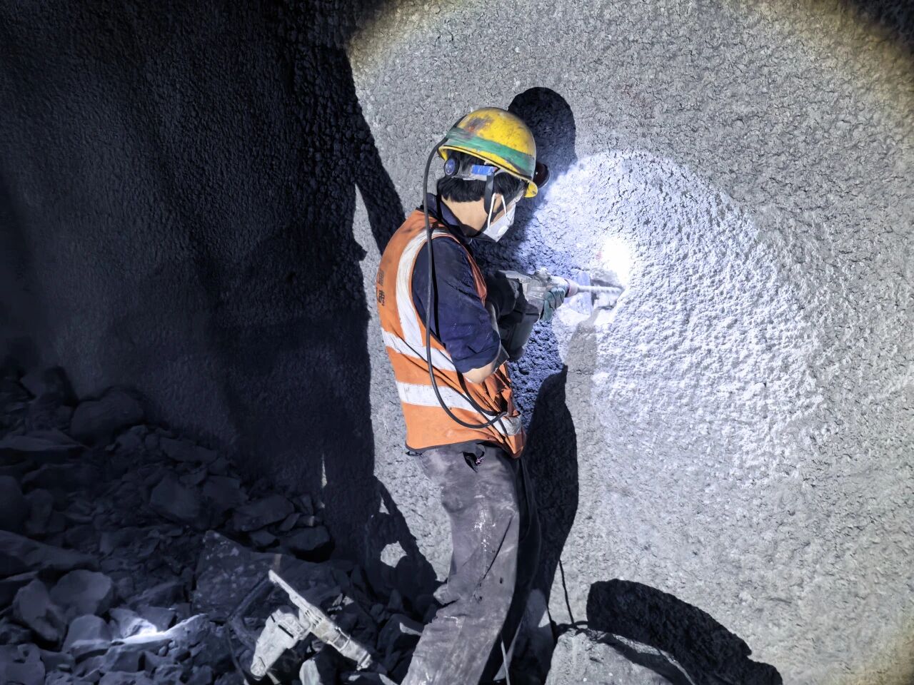 自隧道进口端开工以来,“挑战”便成为建设者们的日常。15 处大小溶洞横亘前路,其中K38+391溶洞更是规模巨大—横向贯穿隧道左右洞,左洞侧探测发育长度达115米、最大断面宽38米,右洞侧发育长度50米、最大断面宽25米。面对这一“拦路虎”,工程技术人员日夜钻研,迅速探明溶洞形态与线路关系,绘制精准图纸,通过科学策划、高效组织,仅用15天便安全闯过溶洞段;岩爆风险突袭时,他们创新采用岩面洒水软化释能、布设应力释放孔、浅孔弱爆等技术,搭配24小时动态监测与临时防护,将风险降到最低;有毒有害气体(硫化氢)潜藏威胁,自动监测设备与专人值守“双保险”同步启动,用严谨守护每一位建设者的安全。