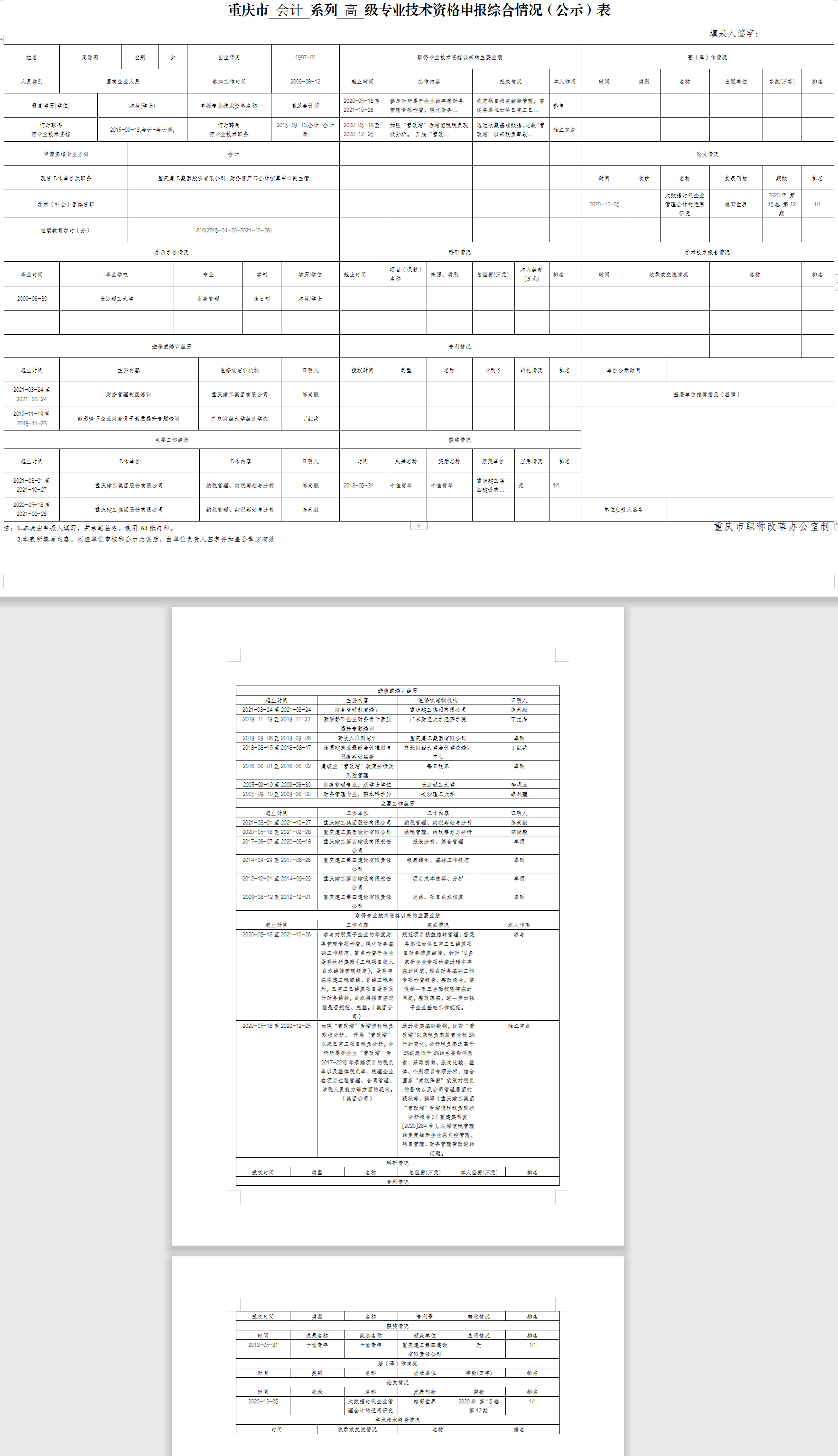 2021年集团机关职称评审公示表(周雅莉)