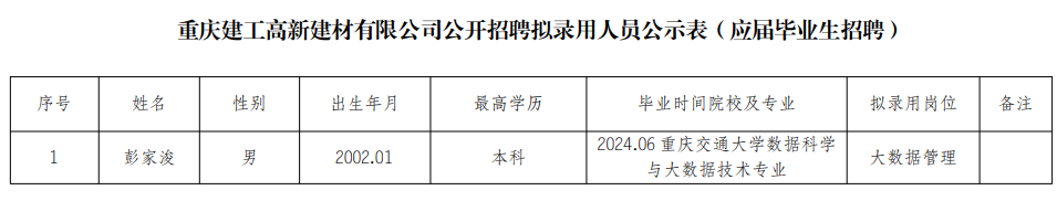 附件:伟德体育高新建材有限公司2023年公开招聘拟录用人员公示表