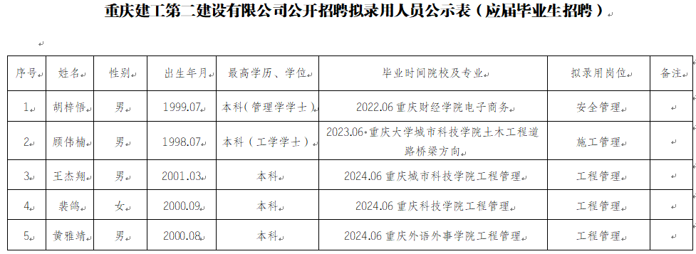 附件:伟德体育第二建设有限公司公开招聘拟录用人员公示