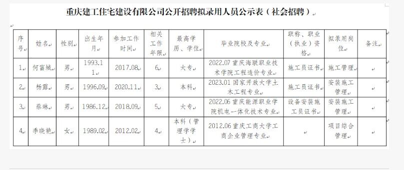 附件:伟德体育住宅建设有限公司2023年公开招聘拟录用人员公示表