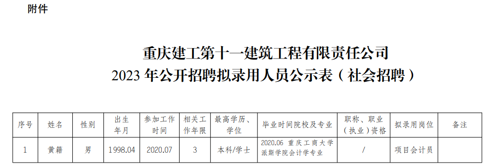 附件:伟德体育第十一建筑工程有限责任公司2023年公开招聘拟聘人员公示表