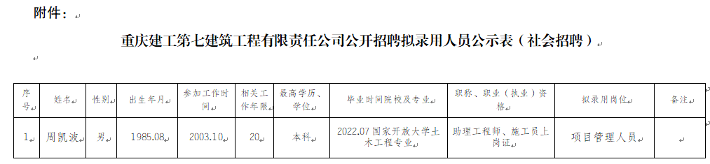 附件:伟德体育第七建筑工程有限责任公司2023年公开招聘拟录用人员公示表