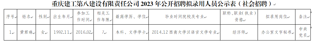 附件:伟德体育第八建设有限责任公司2023年公开招聘拟录用人员公示表