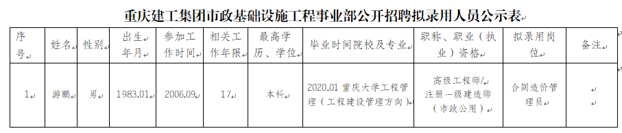 按照伟德体育集团员工招聘管理办法相关规定,根据市政基础设施工程事业部相关招聘启事,经公开招聘,现将拟录用人员予以公示。