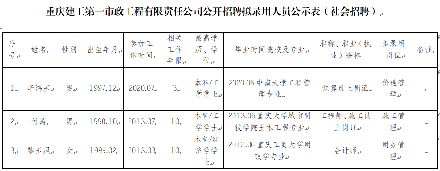 附件:伟德体育第一市政工程有限责任公司2023年公开招聘拟录用人员公示表