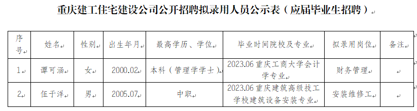 附件:伟德体育住宅建设有限公司2023年公开招聘拟录用人员公示表