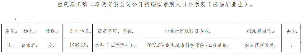 附件:伟德体育第二建设有限公司2023年公开招聘拟聘人员公示表