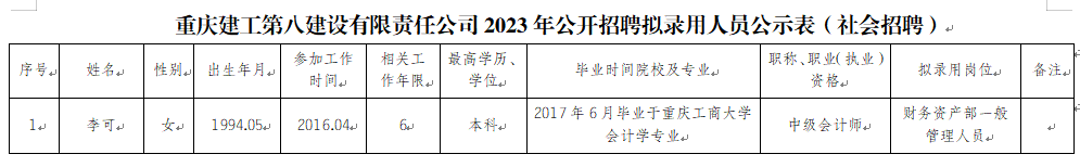 附件:伟德体育第八建设有限责任公司2023年公开招聘拟录用人员公示表
