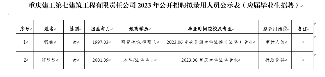 附件:伟德体育第七建筑工程有限责任公司2023年公开招聘拟聘人员公示表