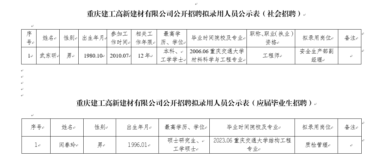 附件:伟德体育高新建材有限公司2023年公开招聘拟录用人员公示表