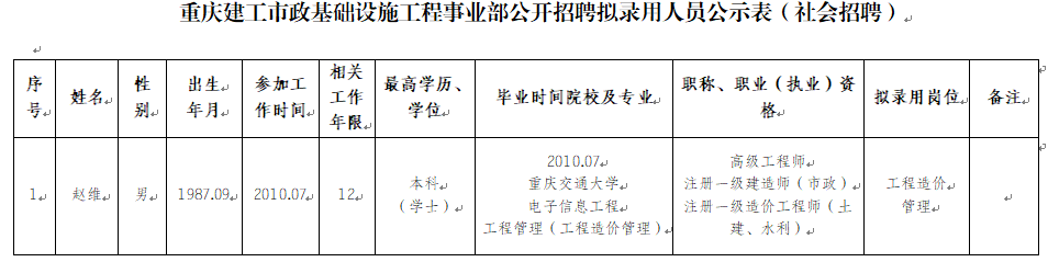 按照伟德体育集团员工招聘管理办法相关规定,根据市政基础设施工程事业部相关招聘启事,经公开招聘,现将拟聘用人员予以公示。