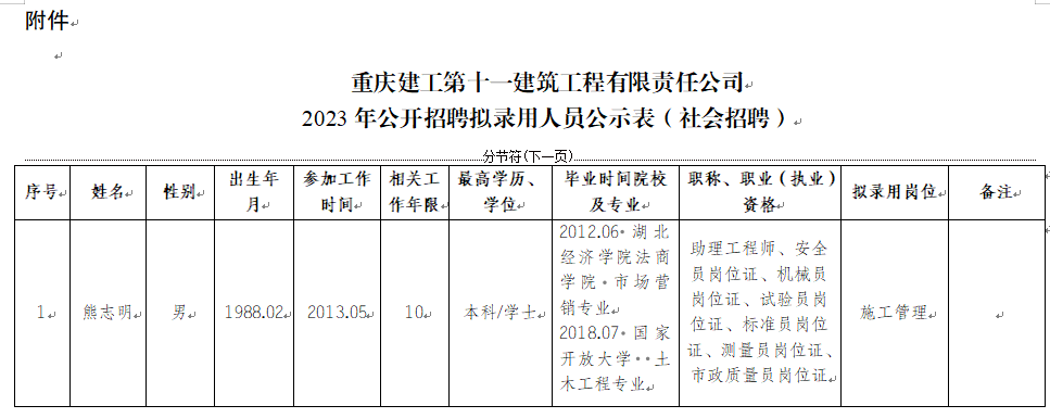 附件:伟德体育第十一建筑工程有限责任公司2023年公开招聘拟录用人员公示表