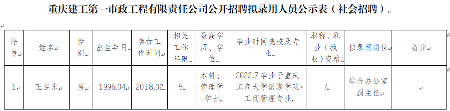 附件:伟德体育第一市政工程有限责任公司2023年公开招聘拟录用人员公示表