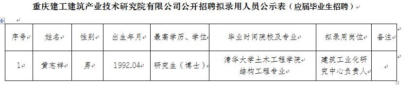 附件:伟德体育建筑产业技术研究院有限公司2023年公开招聘拟录用人员公示表