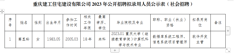 附件:伟德体育住宅建设有限公司2023年公开招聘拟录用人员公示表