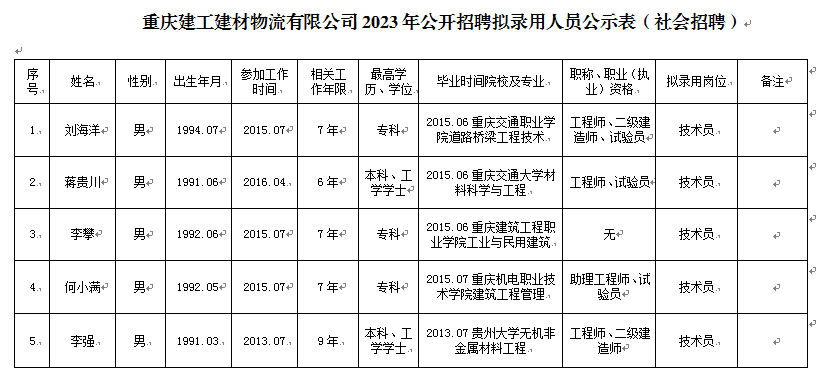 附件:伟德体育建材物流有限公司2023年公开招聘拟录用人员公示表