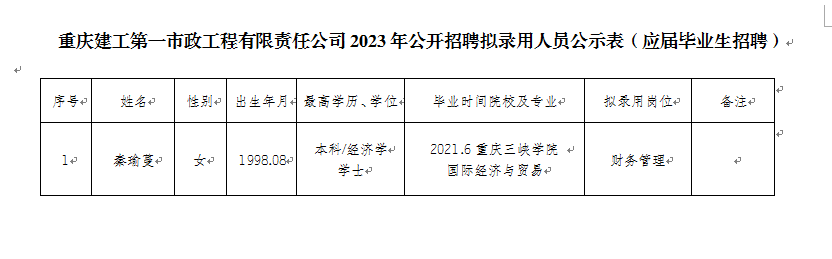 附件:伟德体育第一市政工程有限责任公司2023年公开招聘拟录用人员公示表