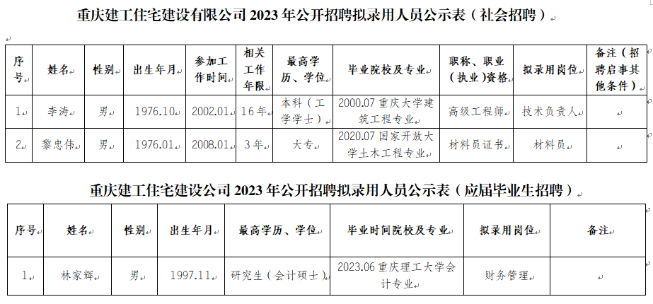 附件:伟德体育住宅建设有限公司2023年公开招聘拟录用人员公示表