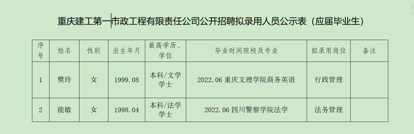附件:伟德体育第一市政工程有限责任公司2022年公开招聘拟录用人员公示表