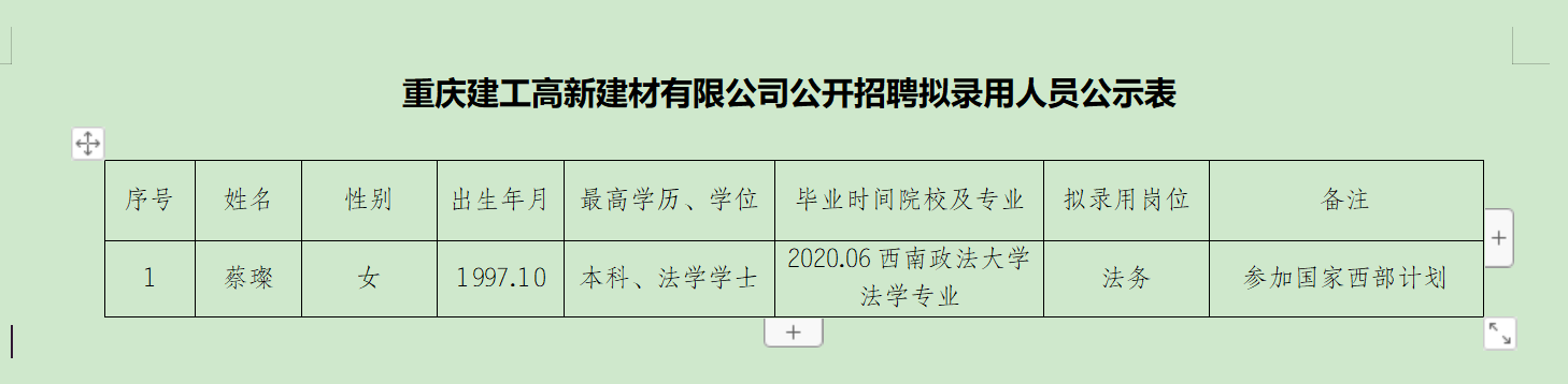 附件:伟德体育高新建材有限公司2022年公开招聘拟聘人员公示表