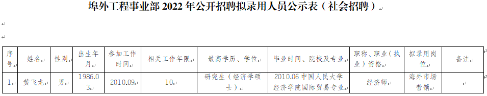 附件:伟德体育集团埠外工程事业部2022年公开招聘拟聘人员公示表