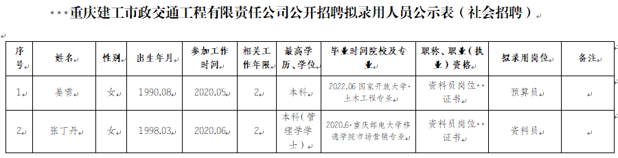 附件:伟德体育市政交通工程有限责任公司2022年社会招聘拟录用人员公示表