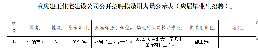 附件:伟德体育住宅建设有限公司2022年公开招聘拟录用人员公示表